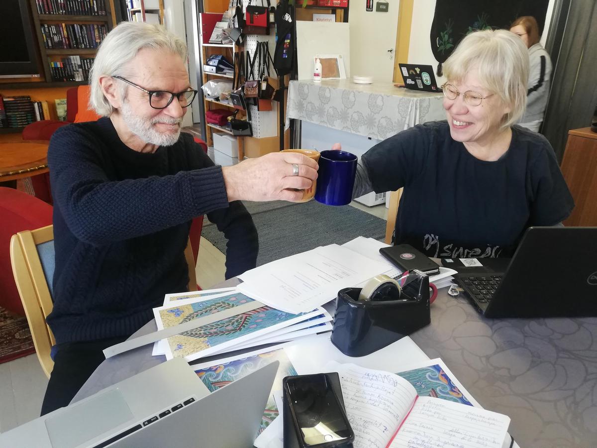 Tuottaja Tarja Tornaeus ja kustantaja, kirjailija Olli Sarpo kertovat
